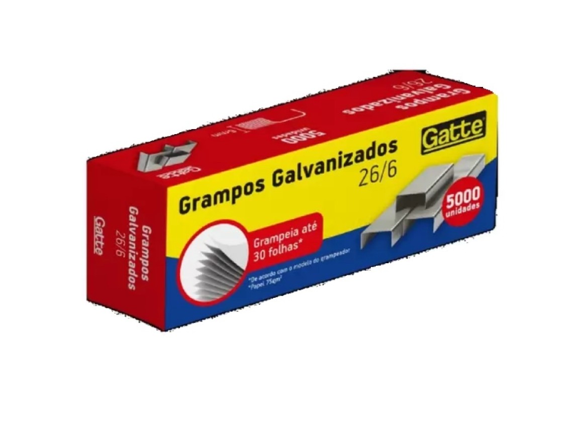 Grampo 26/6 Galvanizado Caixa C/5000 Grampos - Gatte