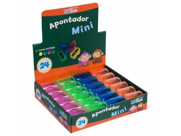 Apontador Mini com Depósito Leo e Leo - Caixa c/ 24 unidades - Leonora Apontador Mini com Depósito Leo e Leo tem formato regular anatômico e lâmina de inox de alta qualidade, garantindo maior durabilidade.