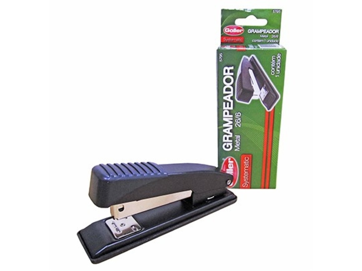VALIDADE: INDETERMINADA TIPO DE PRODUTO: GRAMPEADOR 26/6 NA CAIXA COR: PRETO COMPOSIÇÃO: PLASTICO E METAL PARA GRAMPEAR COM GRAMPOS ABERTOS OU FECHADOS