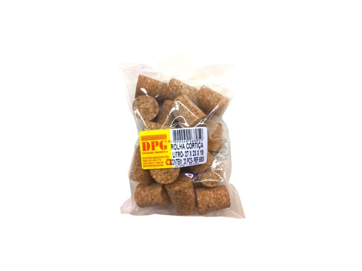 Rolha de Cortiça Litro da marca dpg, pacote com 20 unidades. Medidas: 27 mm x 23 mm x 19 mm Formato: Cônica.