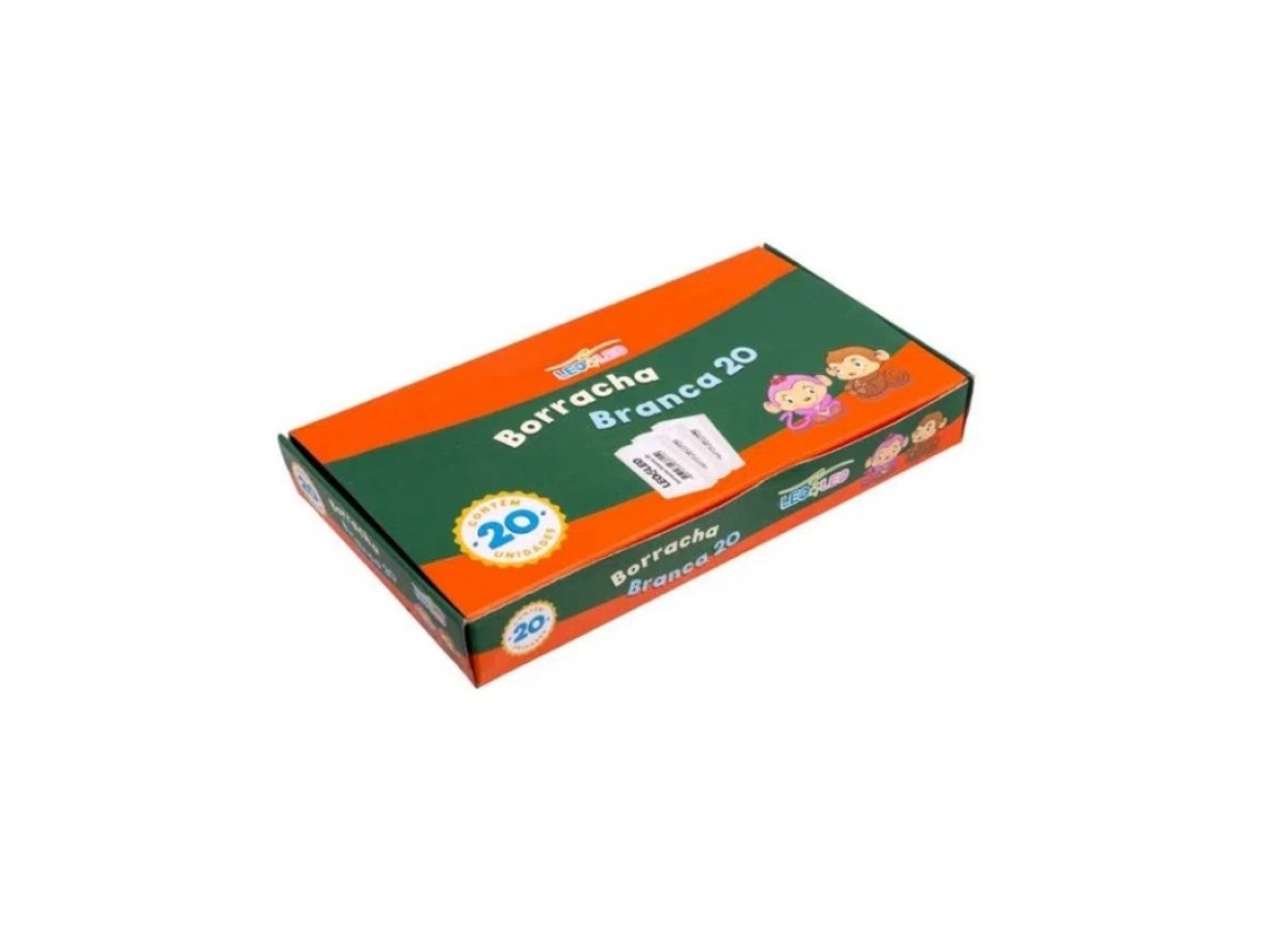 Kit 20 Borrachas Brancas Nº20 Escolar Leo E Leo Qualidade e durabilidade resumem essas borrachas. Apaga facilmente lápis e grafite de lapiseira em qualquer graduação. Toque leve e macio. Validade: Indeterminada Contém 20 borrachas em formato retangular brancas Composição: borracha termoplástica atóxica Não recomendado para crianças menores de 3 anos.