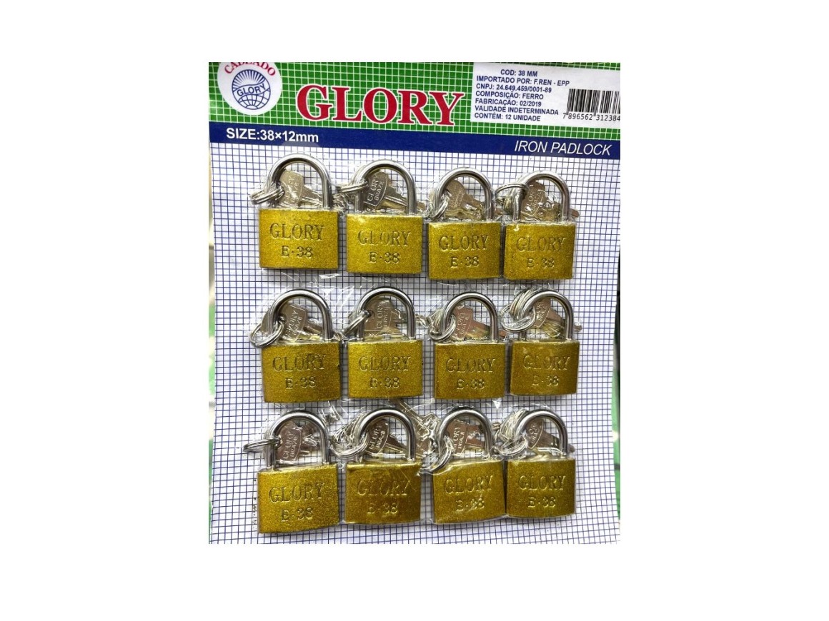 CADEADO GLORY 38MM CARTELA C/12