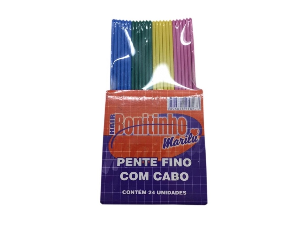 Pente Fino com Cabo da marca Marilu, pacote contendo 24 unidades.