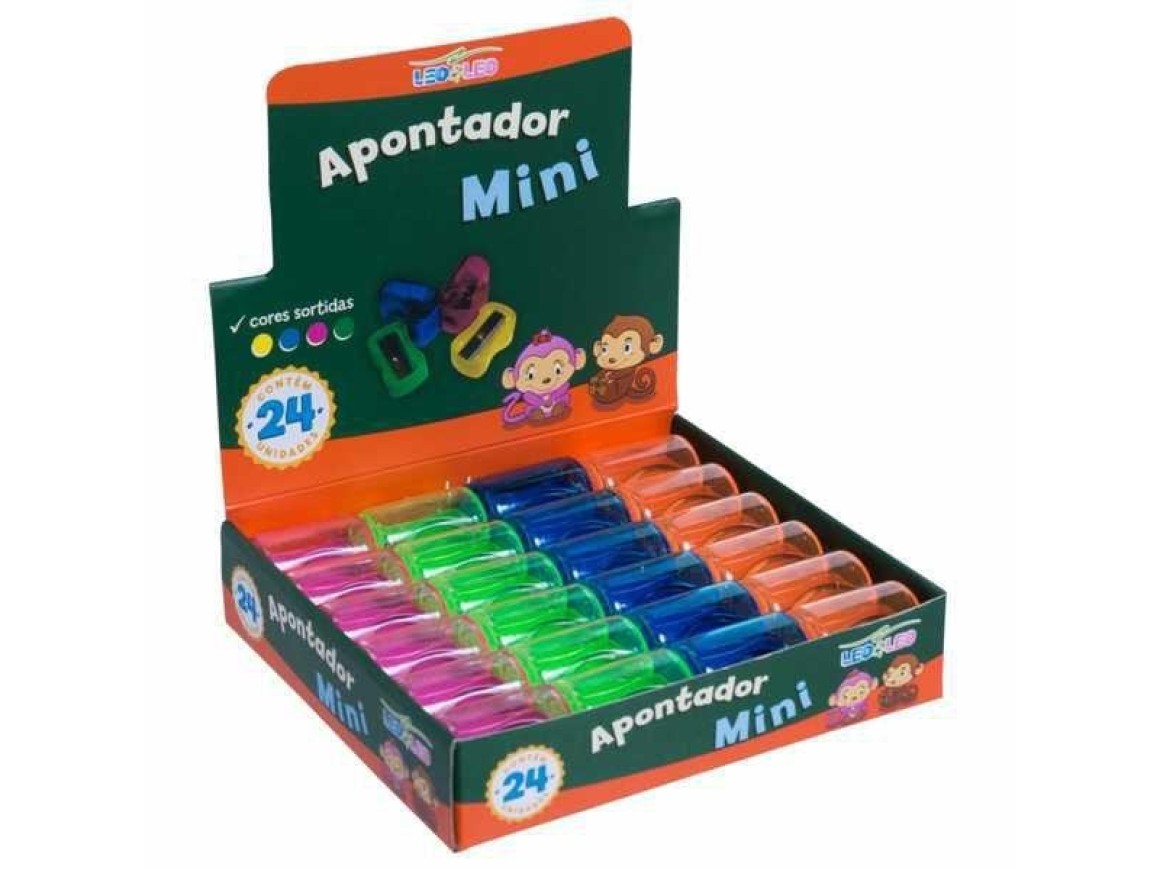 Apontador Mini com Depósito Leo e Leo - Caixa c/ 24 unidades - Leonora Apontador Mini com Depósito Leo e Leo tem formato regular anatômico e lâmina de inox de alta qualidade, garantindo maior durabilidade.