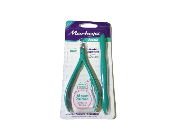 Alicate Cutícula Merheje Basic + Espátula Verde Aço Inox