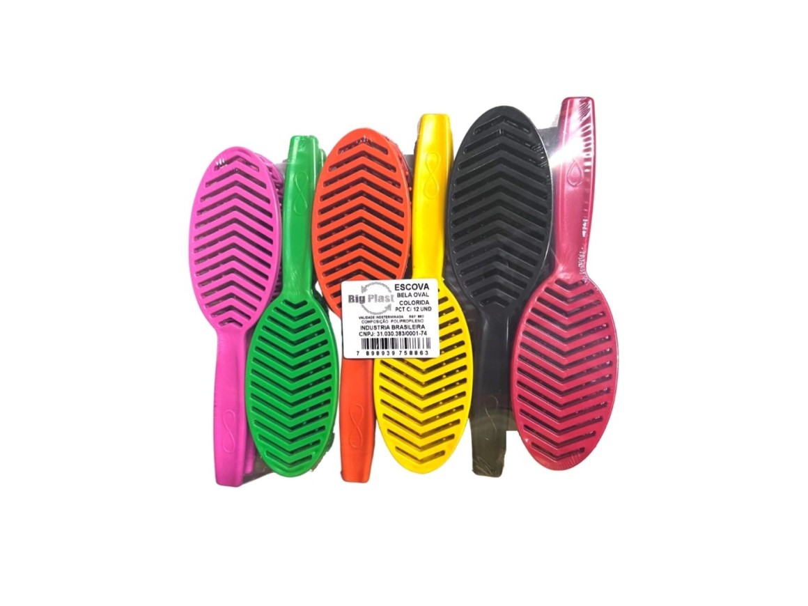 Escova Oval da marca Big Plast, pacote contendo 12 unidades. Pacote vem com cores sortidas da fábrica, variando entre múltiplas cores! Composição: Polipropileno