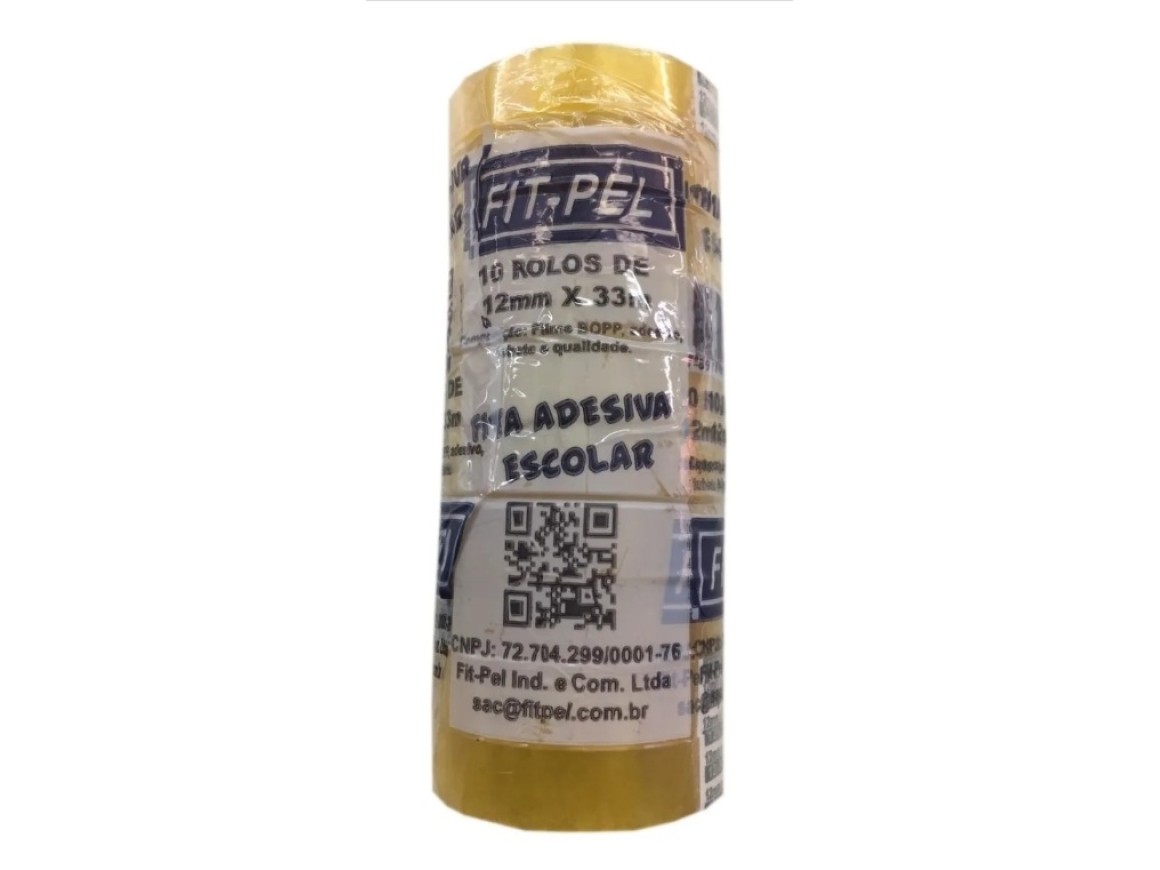 Fita Adesiva Durex Transparente de medida 12 mm x 33 m da marca Fit-Pel, pacote contendo 10 Unidades.