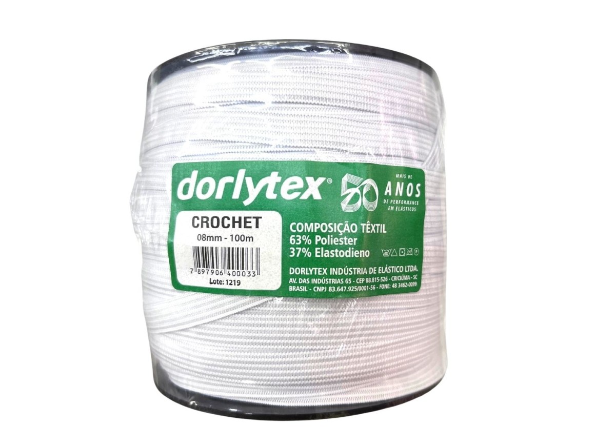 Elástico Dorlytex Crochet Branco - 08mm c/100m