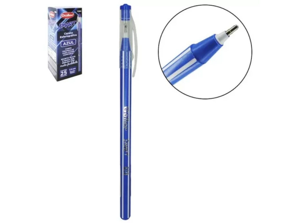 Caneta esferografica azul smart 1.0 mm escrita media com 25 pecas na caixa INFORMAÇÕES ADICIONAIS: INMETRO CERTIFICADO: 002 394/2014 EAN: 7290 VALIDADE: INDETERMINADA TAMANHO APROXIMADO DA CANETA: 14,5CM TAMANHO APROXIMADO DA EMBALAGEM: A:15XL:5,5CM PESO APROXIMADO: 150G TIPO DE PRODUTO: CANETA ESFEROGRAFICA SMART 1.0 MM ESCRITA MEDIA COM 25 PECAS COR: AZUL COMPOSIÇÃO: RESINAS TERMOPLÁSTICAS, TINTA DOCUMENTAL A BASE DE CORANTE, SOLVENTES E ESPESSANTES